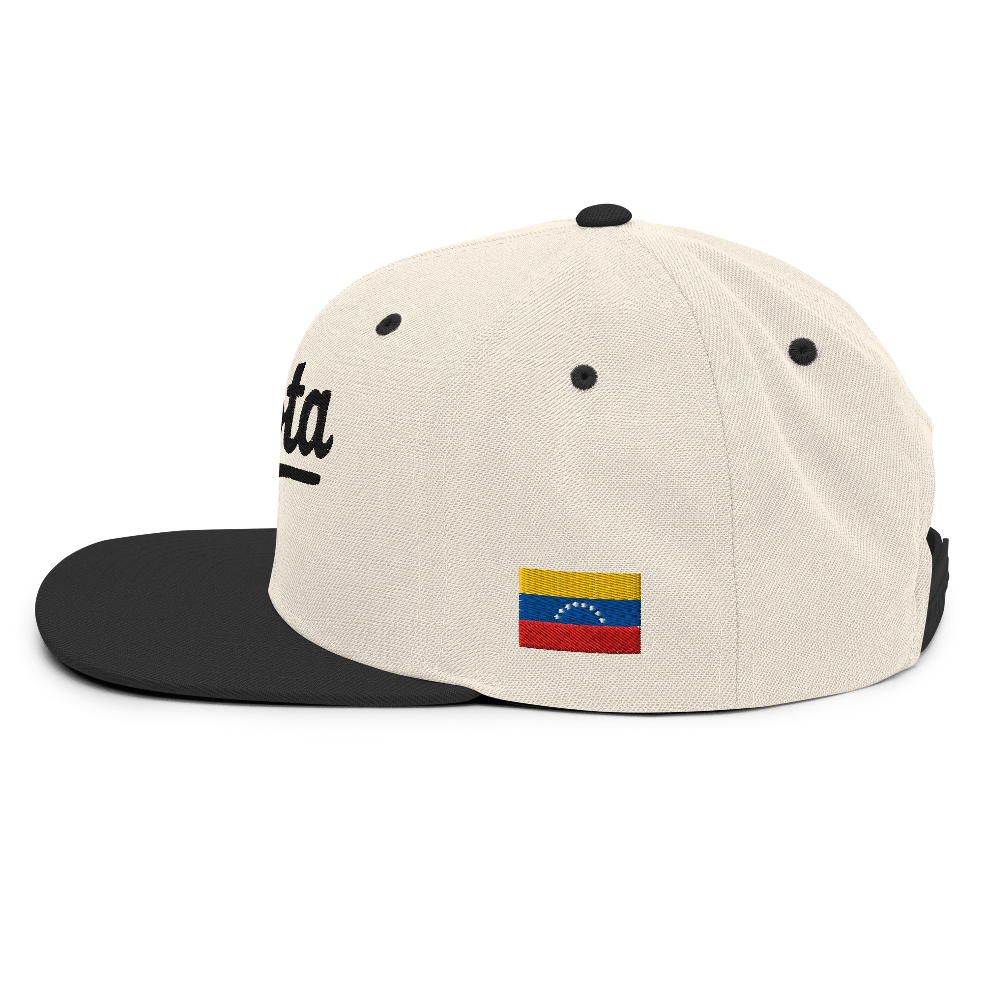 Top off your look with the Pelota Classic Snapback—a structured, one-size-fits-most cap in a warm café con leche crown and an ink-black flat brim that echoes the chalk lines of every field. Built on full buckram with a crisp, classic fit and adjustable snap closure, it features an embroidered Venezuela flag patch on the left side—a salute to the heritage that fuels our universal love of the game. Whether you’re grabbing a cafecito or racing to first pitch, wear your pride and passion with every play.