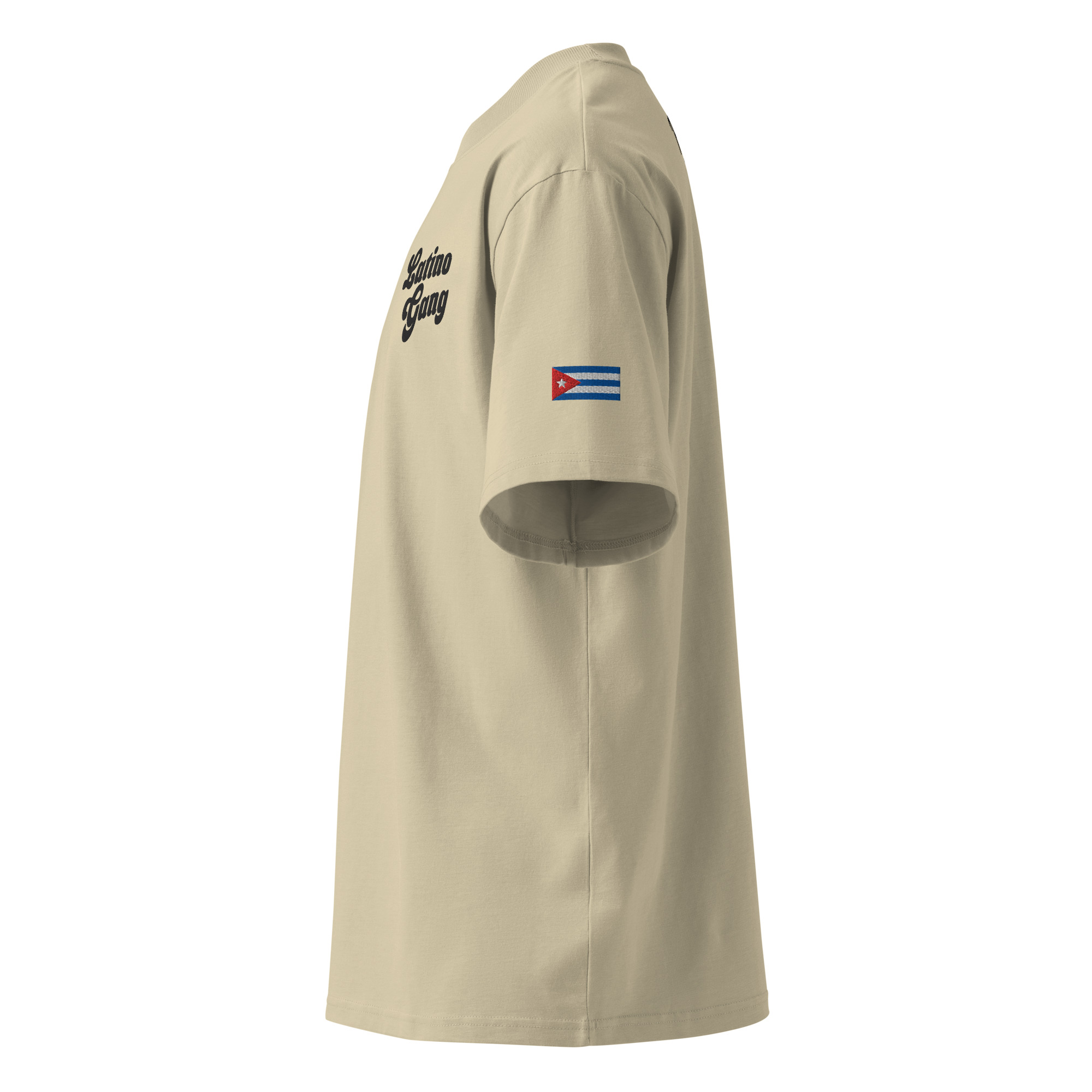 Wear your heart on your sleeve with the embroidered Cuban flag patch, and rep your roots with “Latino Gang” stitched over the heart. Clean, bold, and full of Caribbean soul.