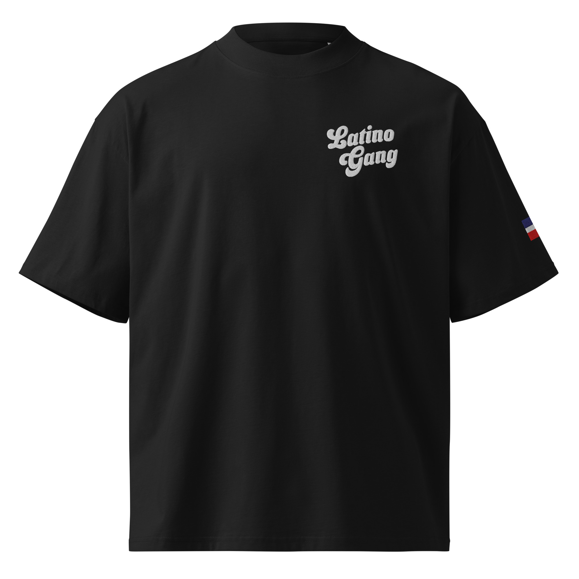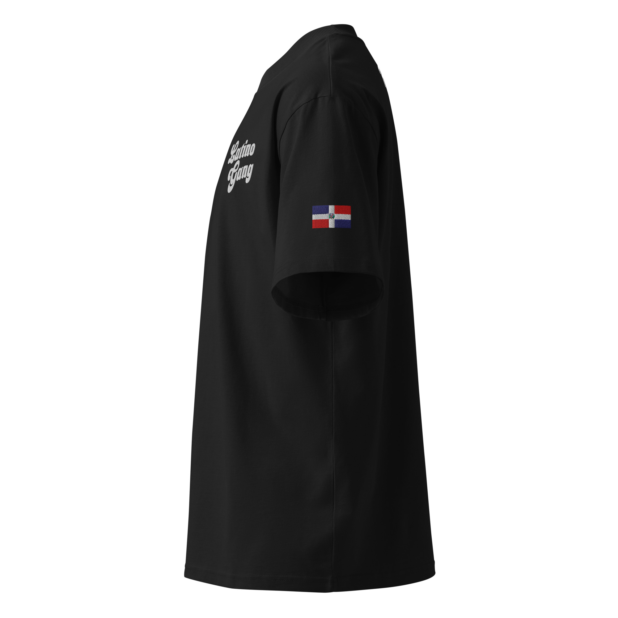 Wear your heart on your sleeve with an embroidered Dominican flag patch, and keep your roots close with “Latino Gang” stitched near the heart. This tee isn’t just fashion — it’s identity.